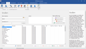 Da sich die Eingabe von Straßen und Objekten ähnlich gestaltet, werden diese zwei Punkte hier zusammen beschrieben. In beiden Ansichten befindet sich im unteren Bereich eine Liste mit allen Datensätzen, die Sie dort auch bearbeiten können. Die Listen sind nach Ort und Straßen bzw. Objektname sortiert. Weitere Eingaben zu dem Datensatz können Sie im oberen Bereich der Eingabemaske hinzufügen. Zu jedem Datensatz können Sie eine Datei oder einen Ordner hinterlegen. Dieser Ordner sollte sich auf einem Netzwerklaufwerk befinden, so dass der Pfad an allen Arbeitsplätzen identisch ist. Beachten Sie hierbei bitte auch, dass für einen Zugriff über EDPweb dieser Ordner bzw. dieses Laufwerk unabhängig von der Benutzeranmeldung in Windows zur Verfügung stehen muss.