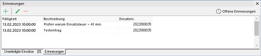 | Offene Erinnerungen Anzeigen aller offenen Erinnerungen |